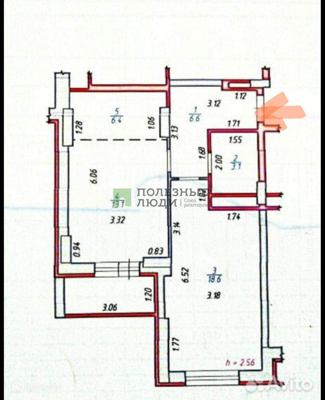Высота потолков 2.6 м