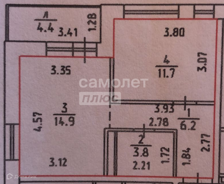 Жилая площадь 11.7 м2