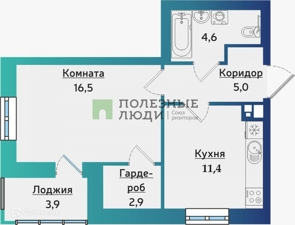 Жилая площадь 16.5 м2