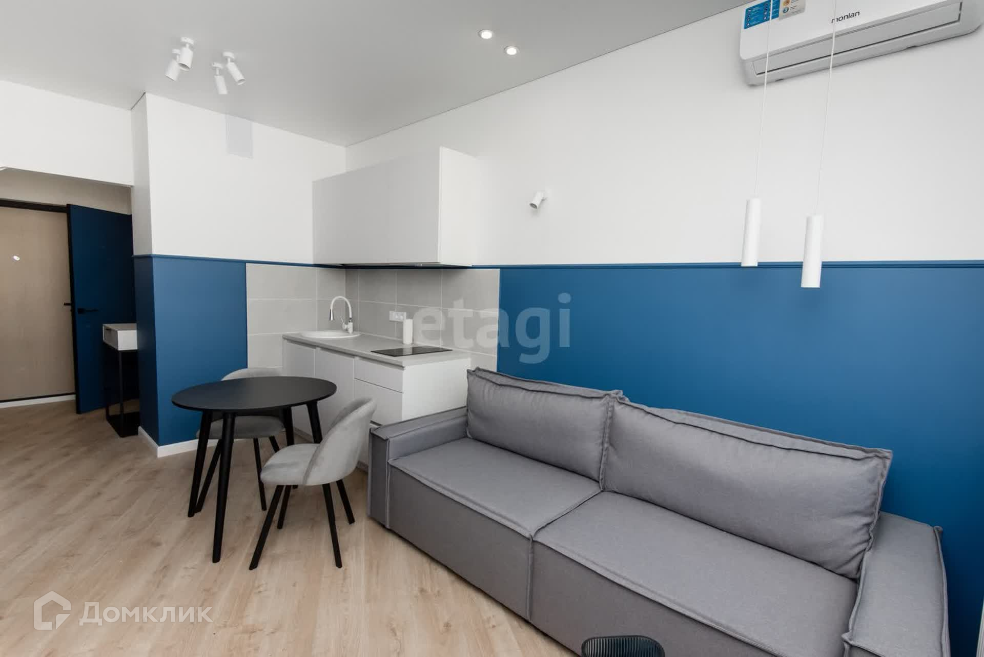 - Сделан современный дизайнерский ремонт с зонированием (выделена полноценная спальная зона и гардеробная, подготовлены выводы под стиральную машину).