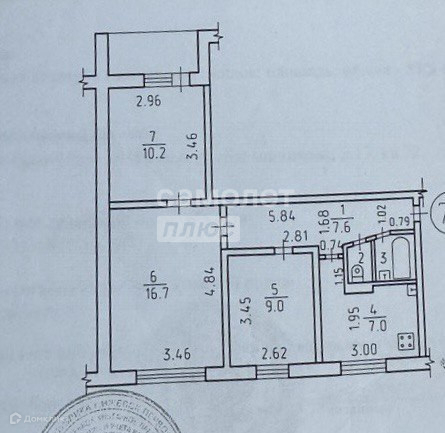 Лоджия 3,5 кв.м., жилая площадь 35,9 кв.м., прихожая + коридор 7,6 кв.м., Санузел раздельный: ванная 2 кв.м, туалет 1 кв.м;
