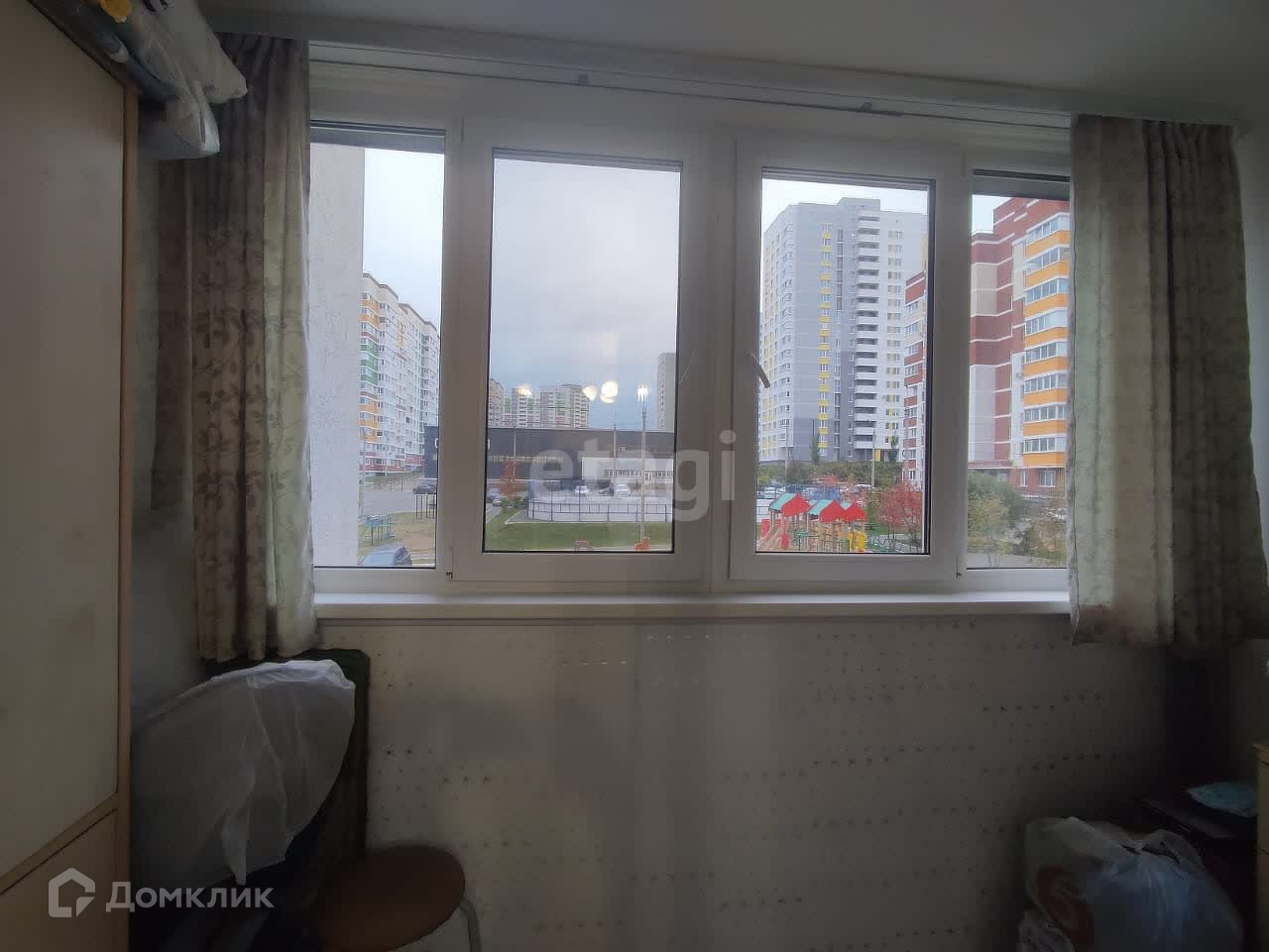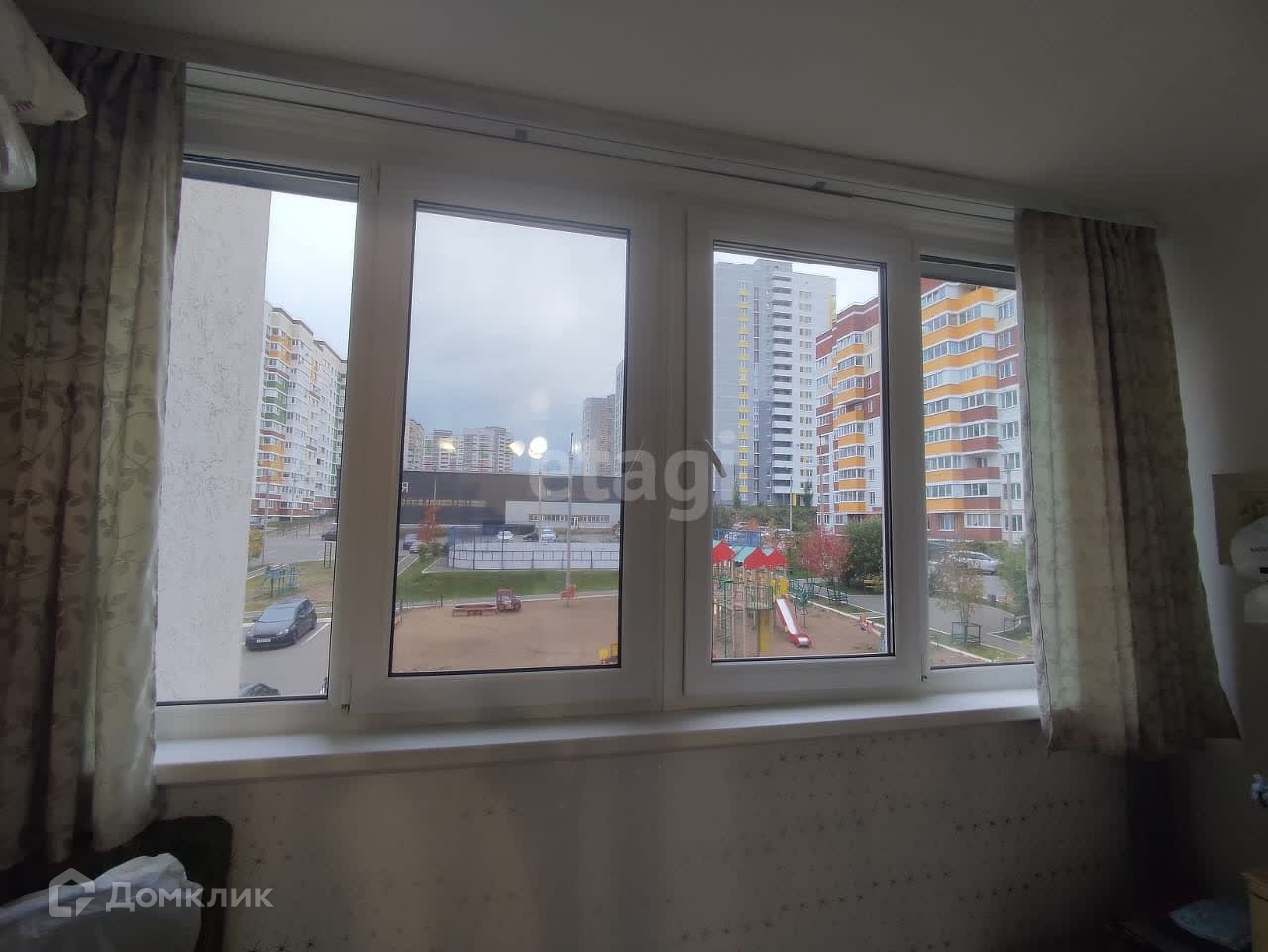 Квартира не угловая, окна выходят во двор и на детскую площадку.