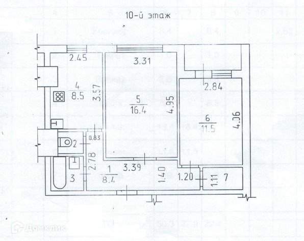 Общая площадь 50.3 м2