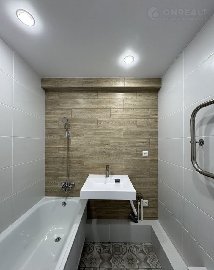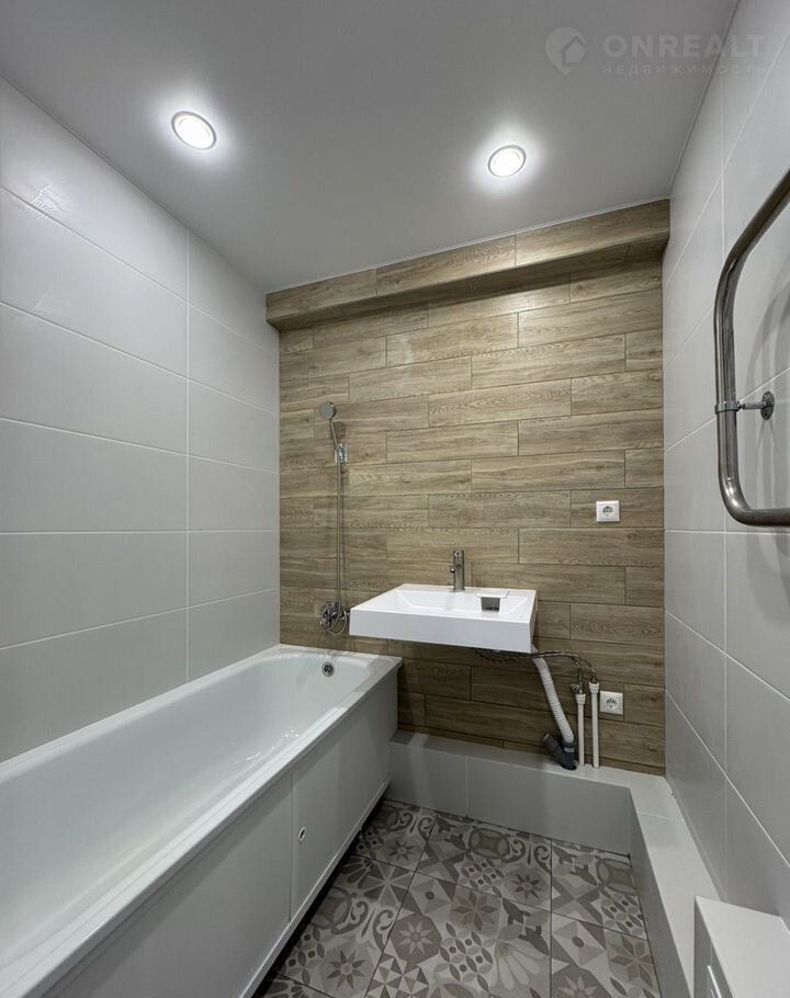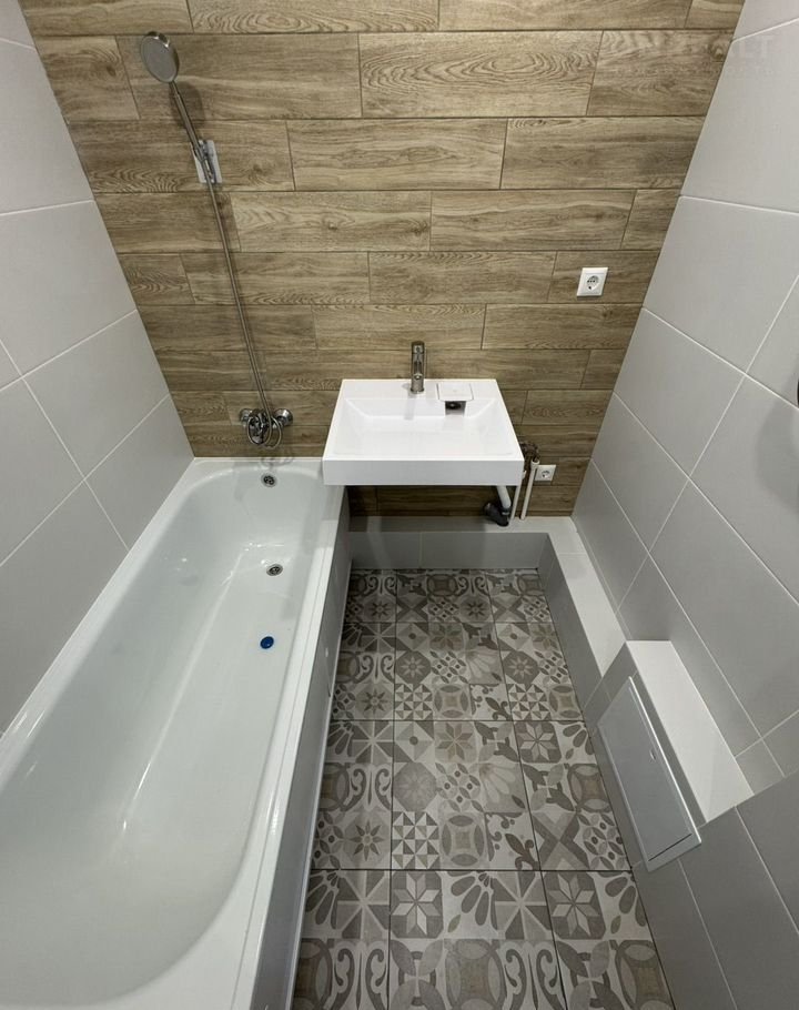 * Ванная комната: новая ванна, плитка, керамогранит, раковина под стиралку, вывод под пенал и освещение;
