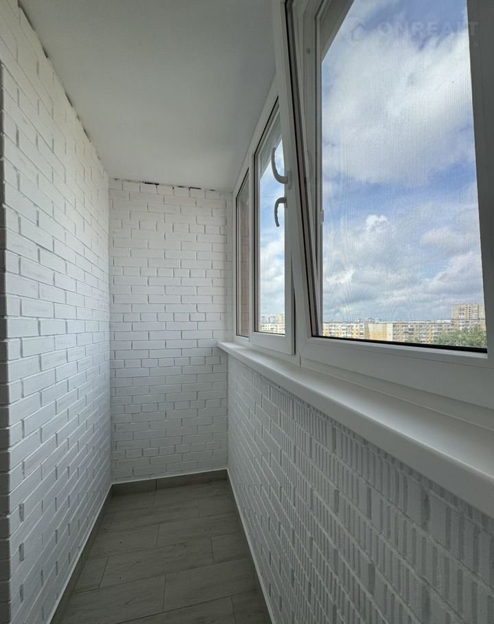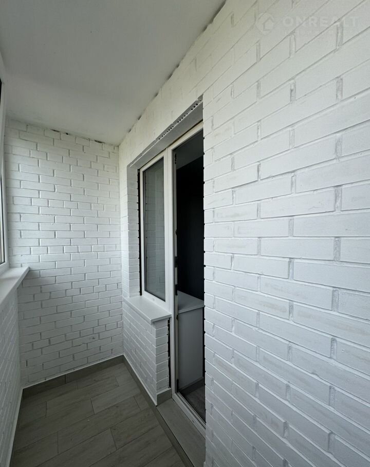 * Застекленная теплым стеклопакетом и профилем лоджия с москитной сеткой, окрашенными стенами и керамогранитом на полу;