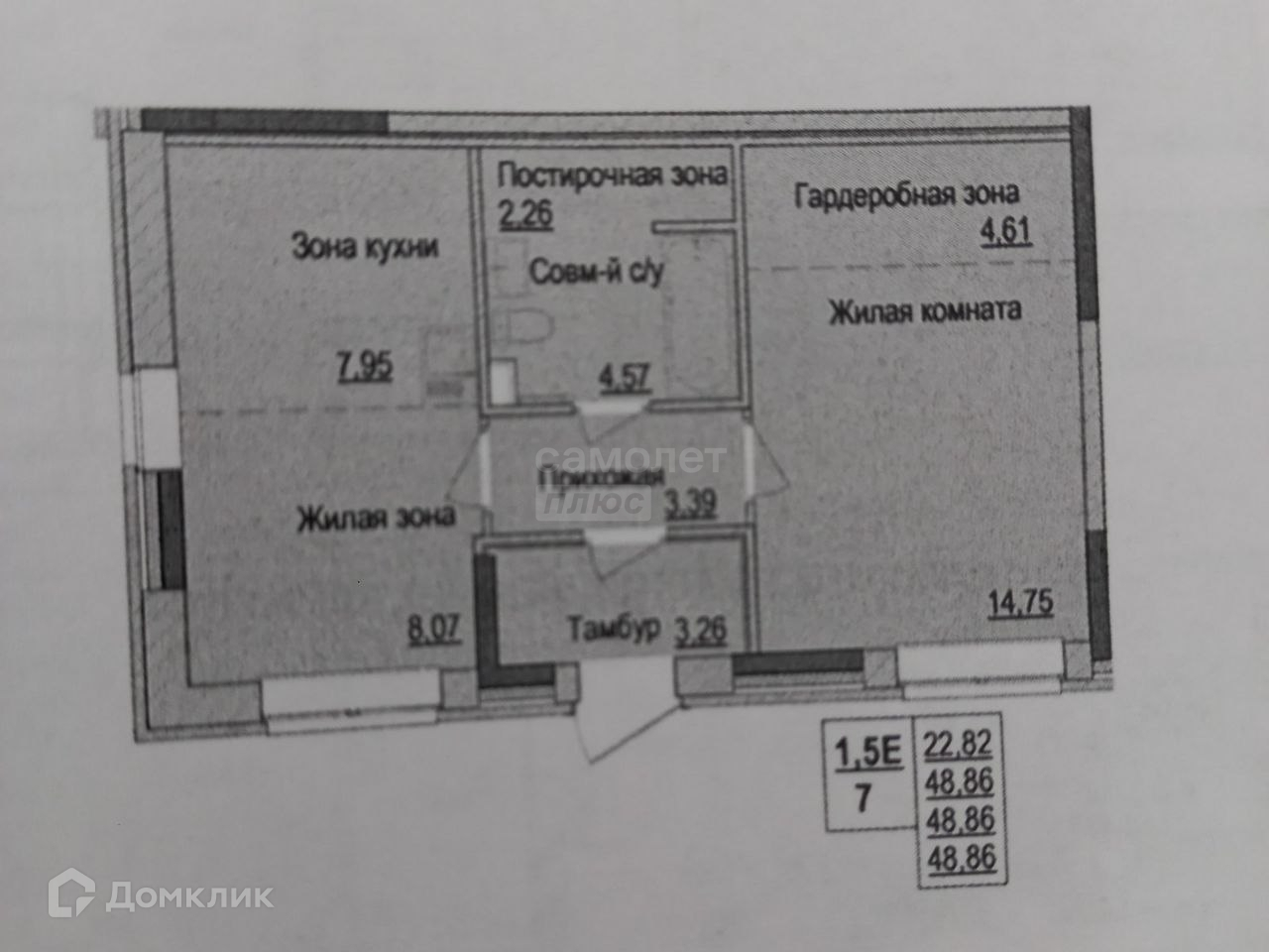 Общая площадь 48.86 м2
