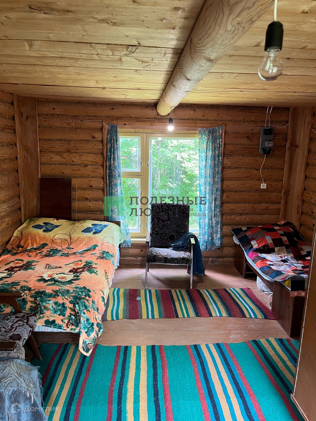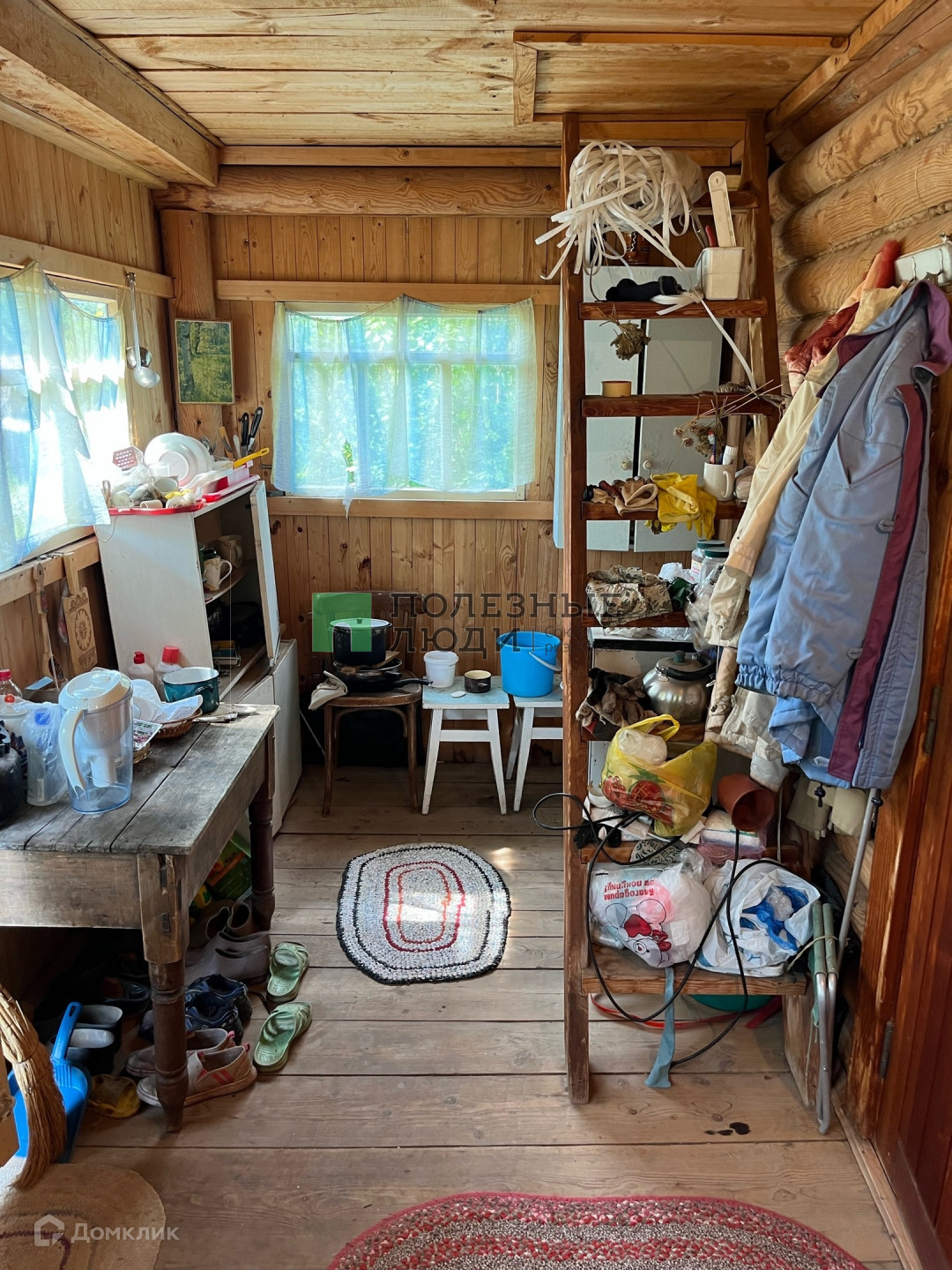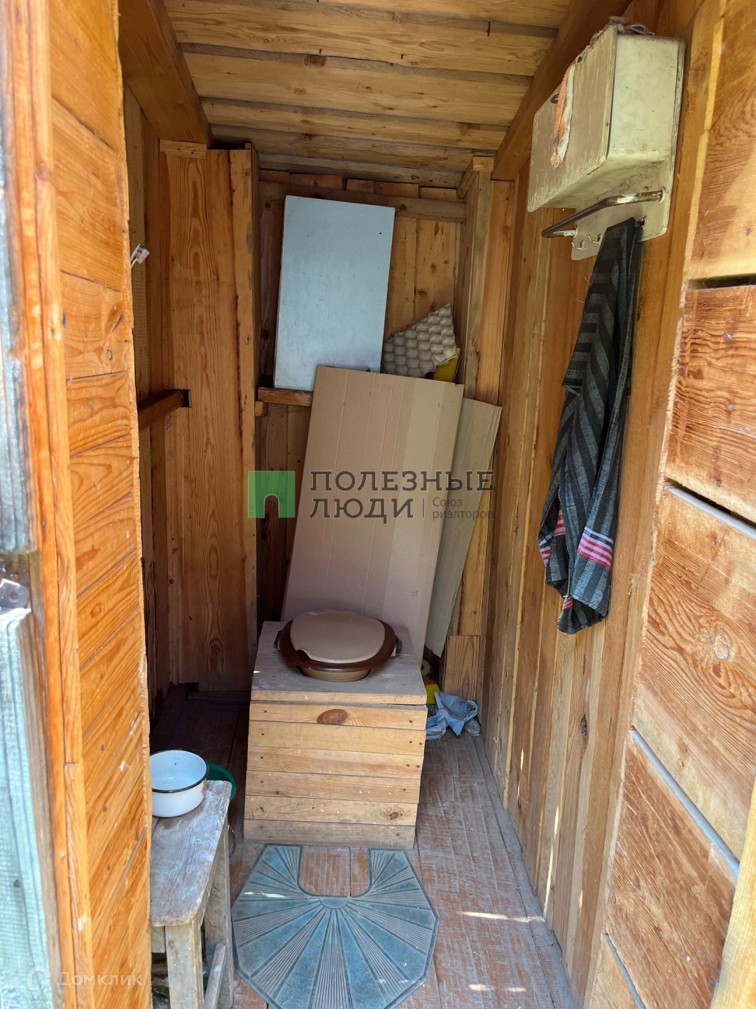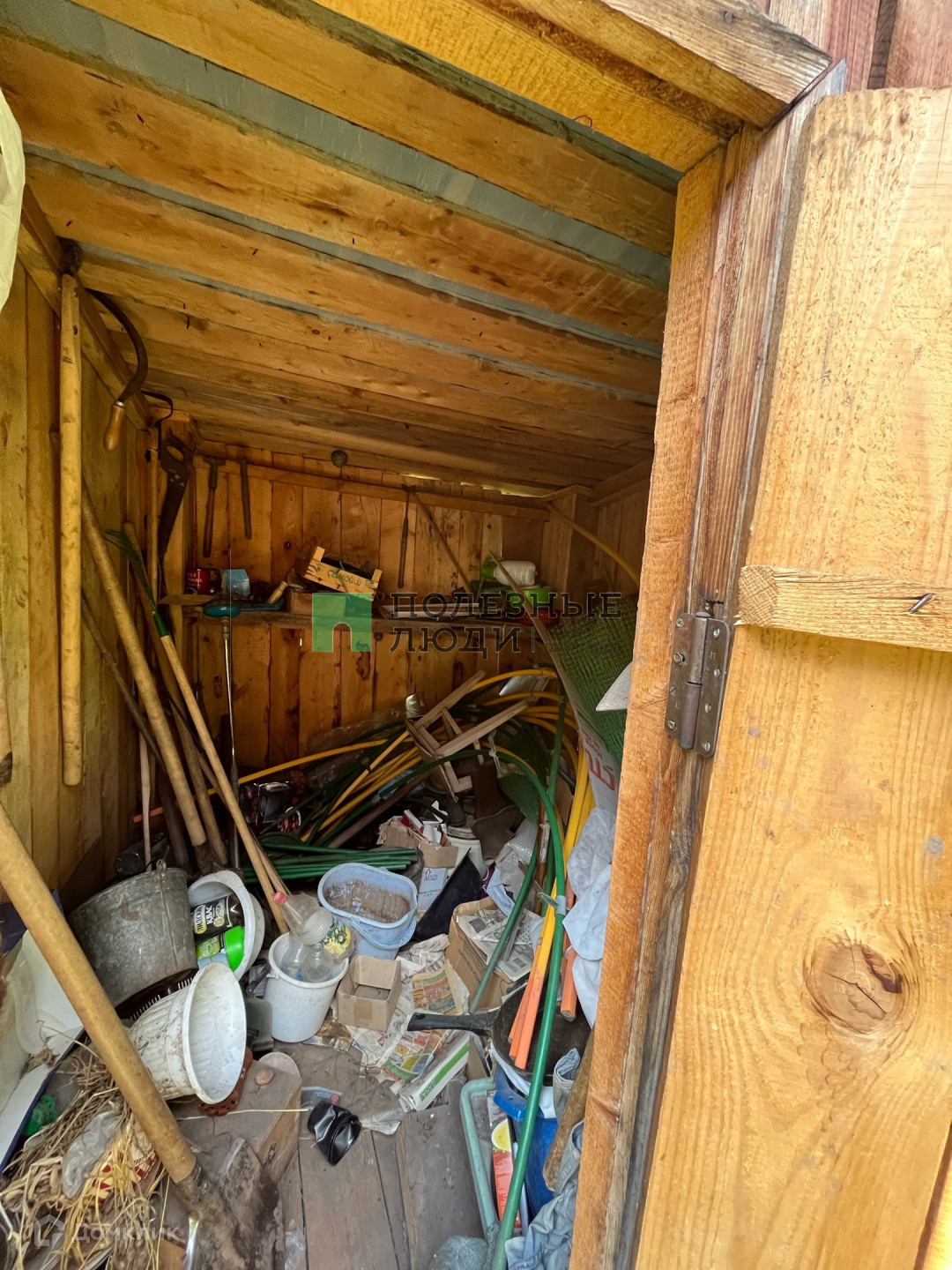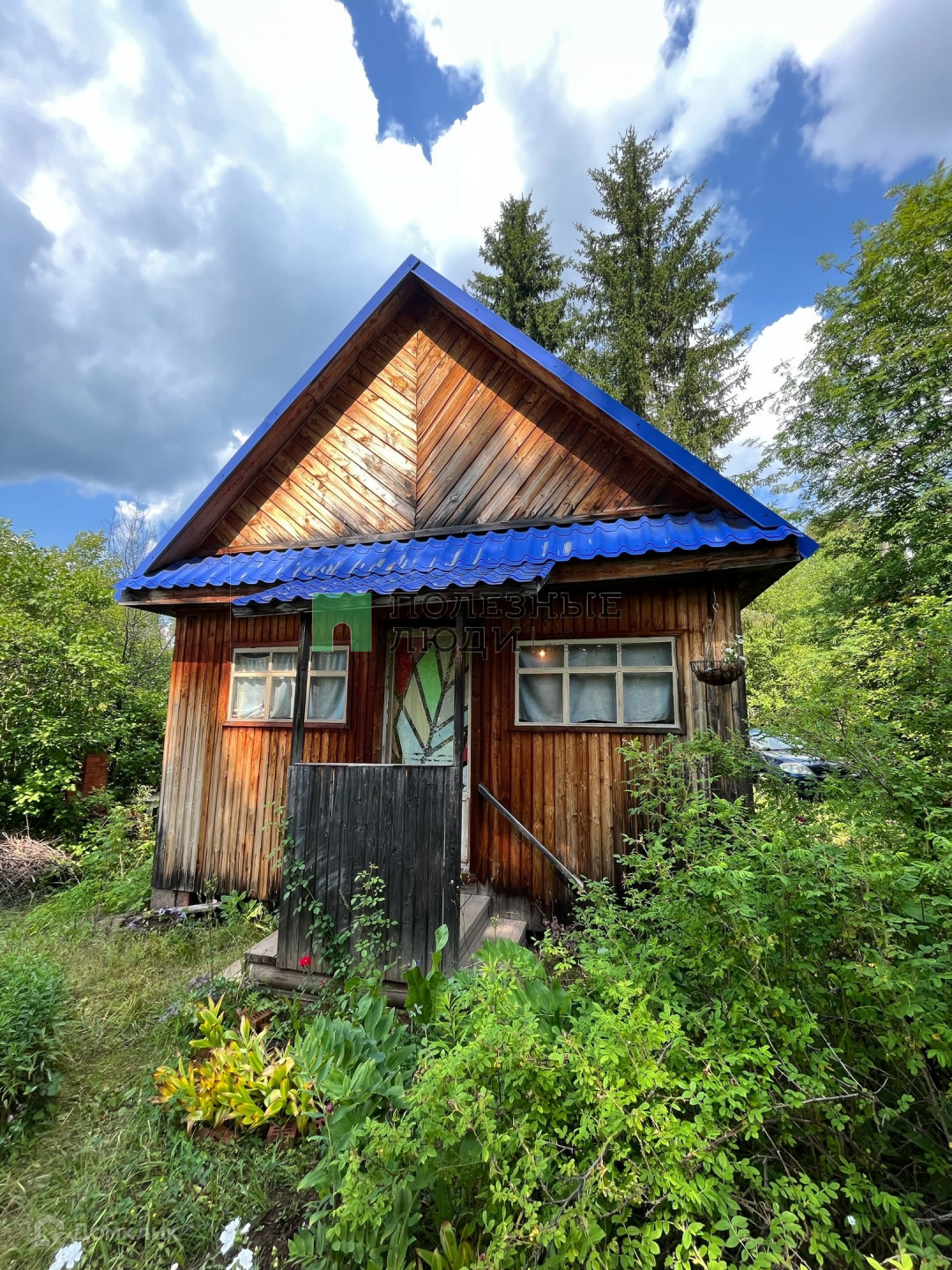 На участке есть бревенчатый дом на прочном фундаменте, беседка, небольшие технические сараи, уборная и плодовые деревья.