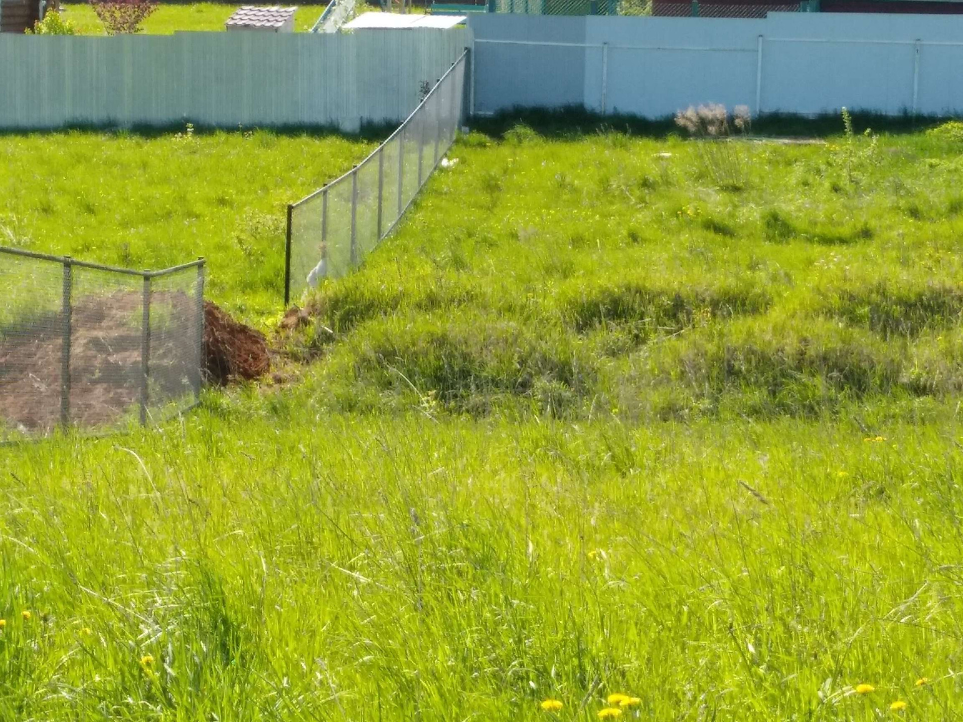С двух сторон участок огорожен соседским забором. Соседи построились, живут.