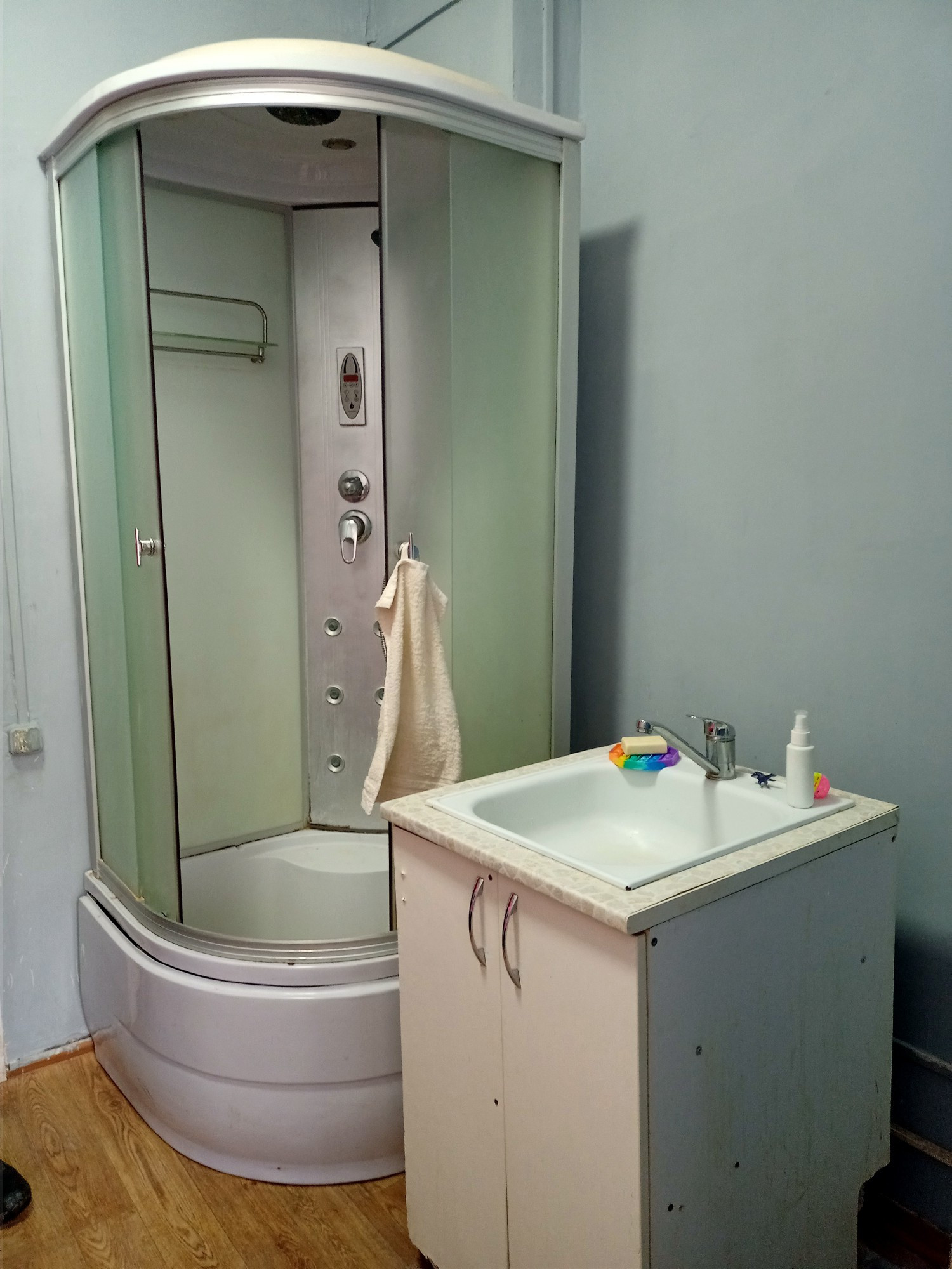 - Душевая кабина в комнате. - Есть вывод для стиральной машины.