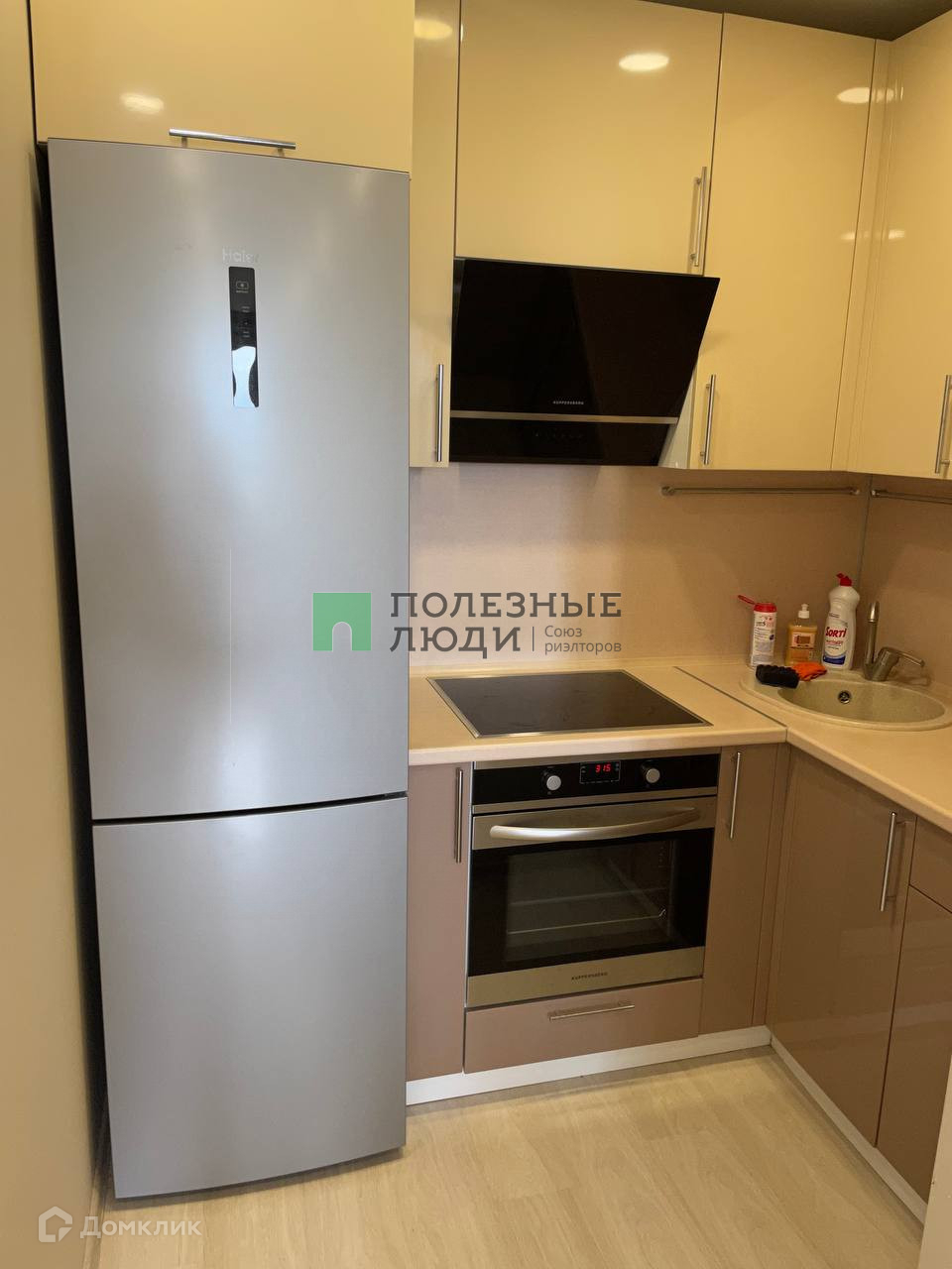 В квартире есть всё необходимое для проживания: стиральная машина Samsung, холодильник Haier, кондиционер Zanussi, духовка и вытяжка Kuppersberg, варочная панель Electrolux, кухонный стол, стулья, кухонный гарнитур, журнальный столик, торшер и полка под ТВ IKEA, 2 вместительных шкафа-купе, водонагреватель, 2 дивана. Квартира идеально подходит для комфортного проживания одного-двух человек.