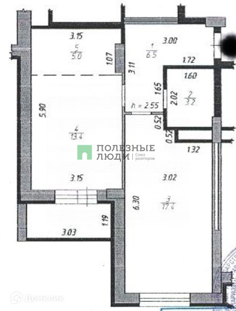 Общая площадь 45.5 м2