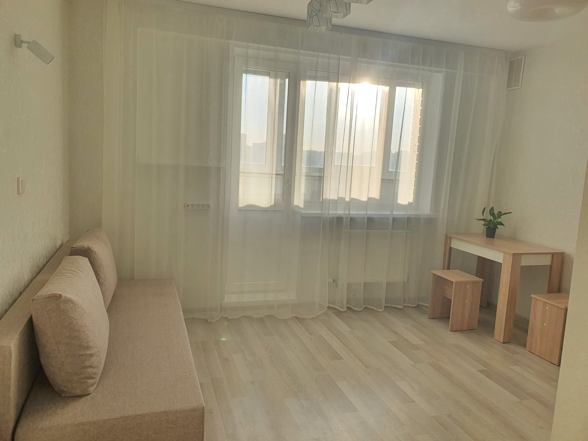 Новый стол и абсолютно новый диван, Вы можете быть уверены, что до Вас на нём никто не спал