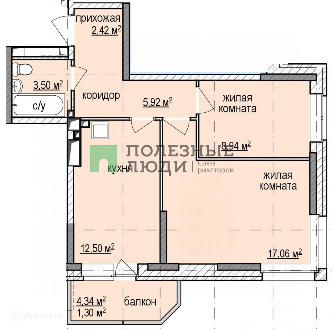 Общая площадь 49.9 м2