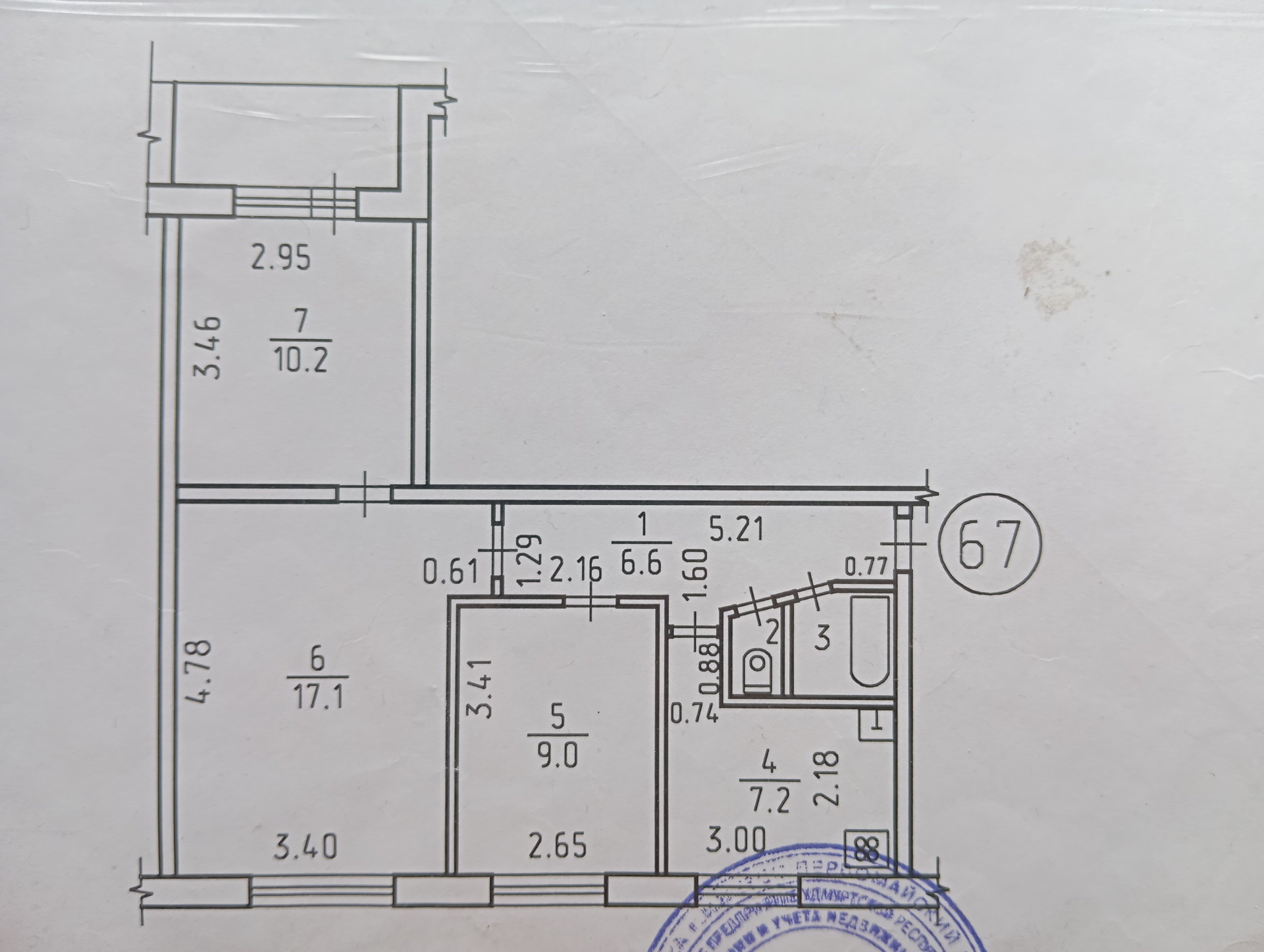 Комнаты 17 кв. м., 11 кв. м. и 10 кв. м.   2 комнаты изолированные.