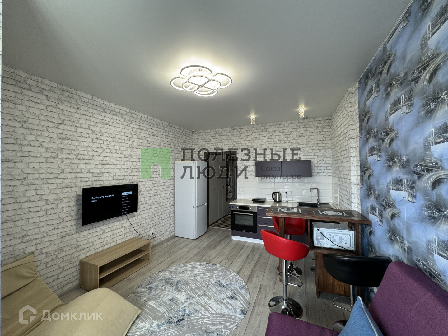 Студия полностью мебелирована, есть вся необходимая для комфортного проживания техника.