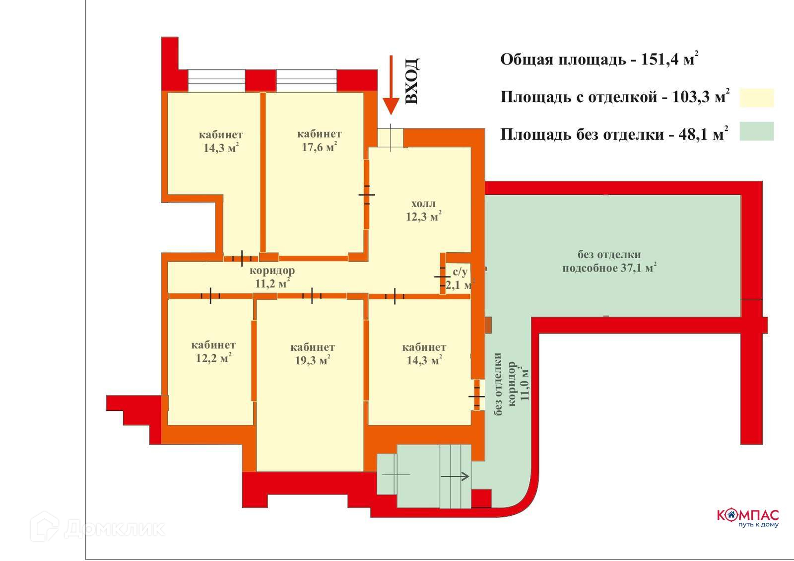 Площадь 103 кв.м. Цена 650 р./кв.м.