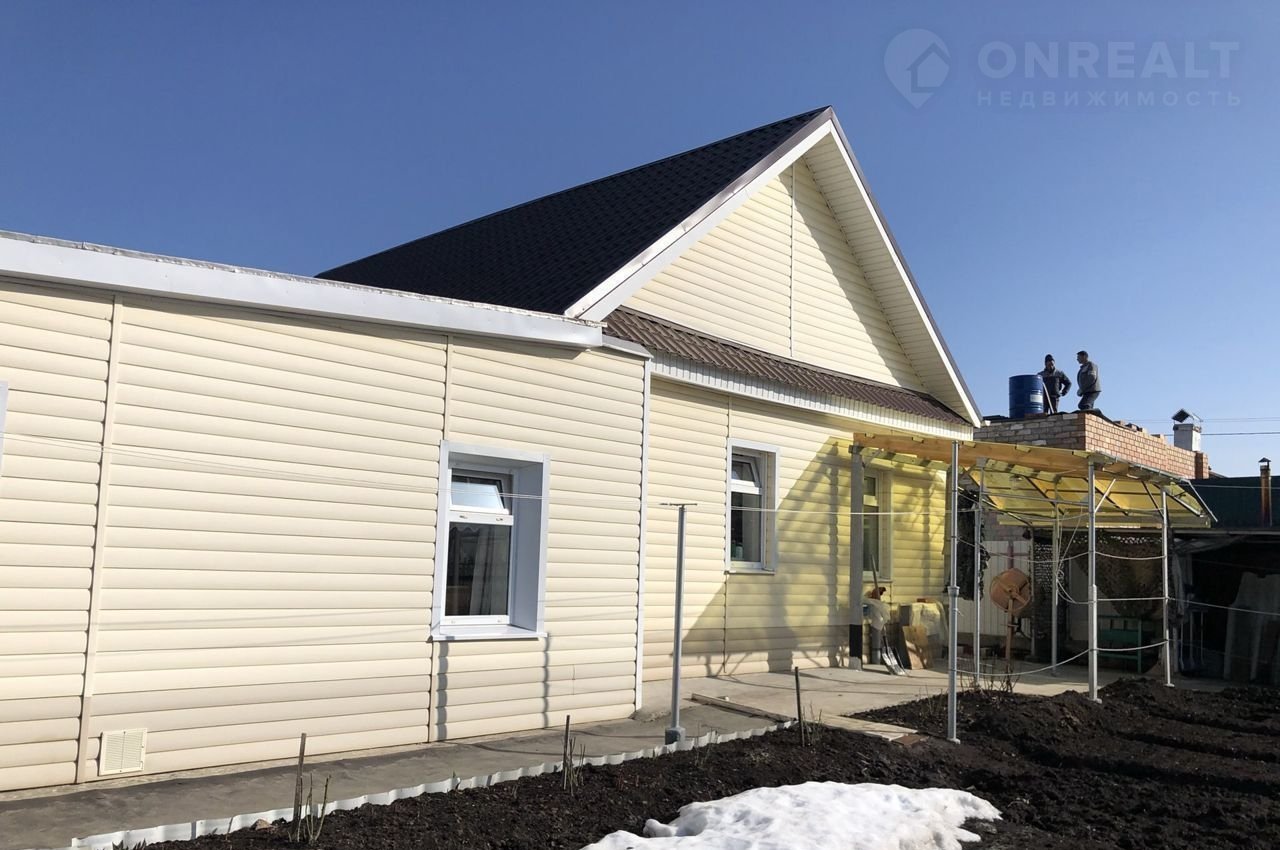 Продаю дом на участке 10,соток, отапливаемая площадь 105,4 кв.м. В доме 4 комнаты и большая кухня. Дом кирпичный, обшитый сайдингом, крыша покрыта металлочерепицей, окна пластиковые, канализация и водопровод новые, туалет и баня в доме, стоят счётчики на газ, свет и воду. Есть гараж и веранда. Вся постройка под одной крышей. Ухоженный огород, есть беседка. В пешей доступности транспорт 8к, 40к, 34к.
