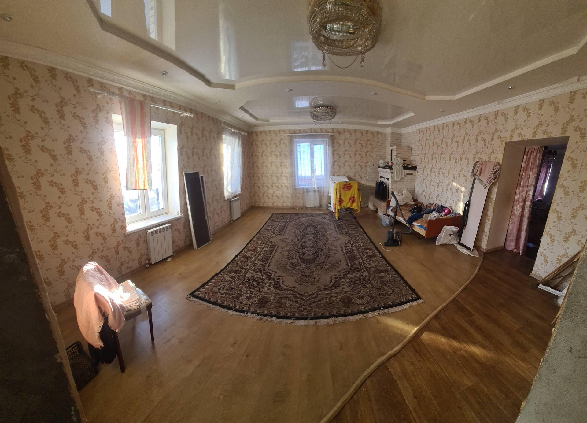 дом построен в 2016 году из белого и кирпича, 2 этажа и 3-й мансарда. В доме есть сауна в цокольный этаже. Так же отдельно построенный гараж, и кладовая с погребом.