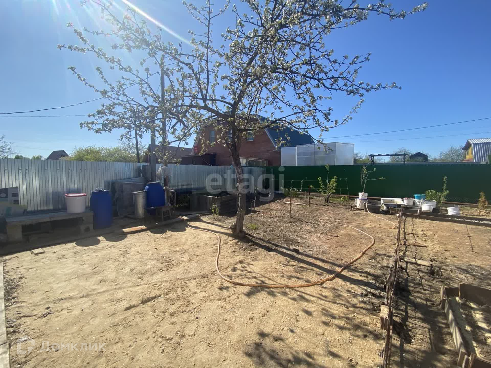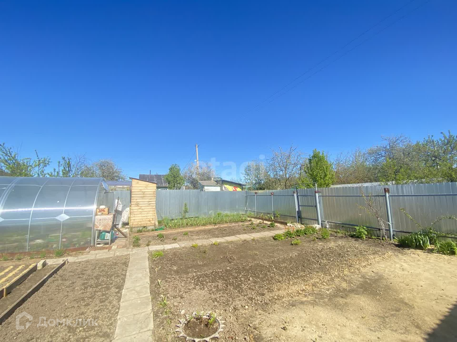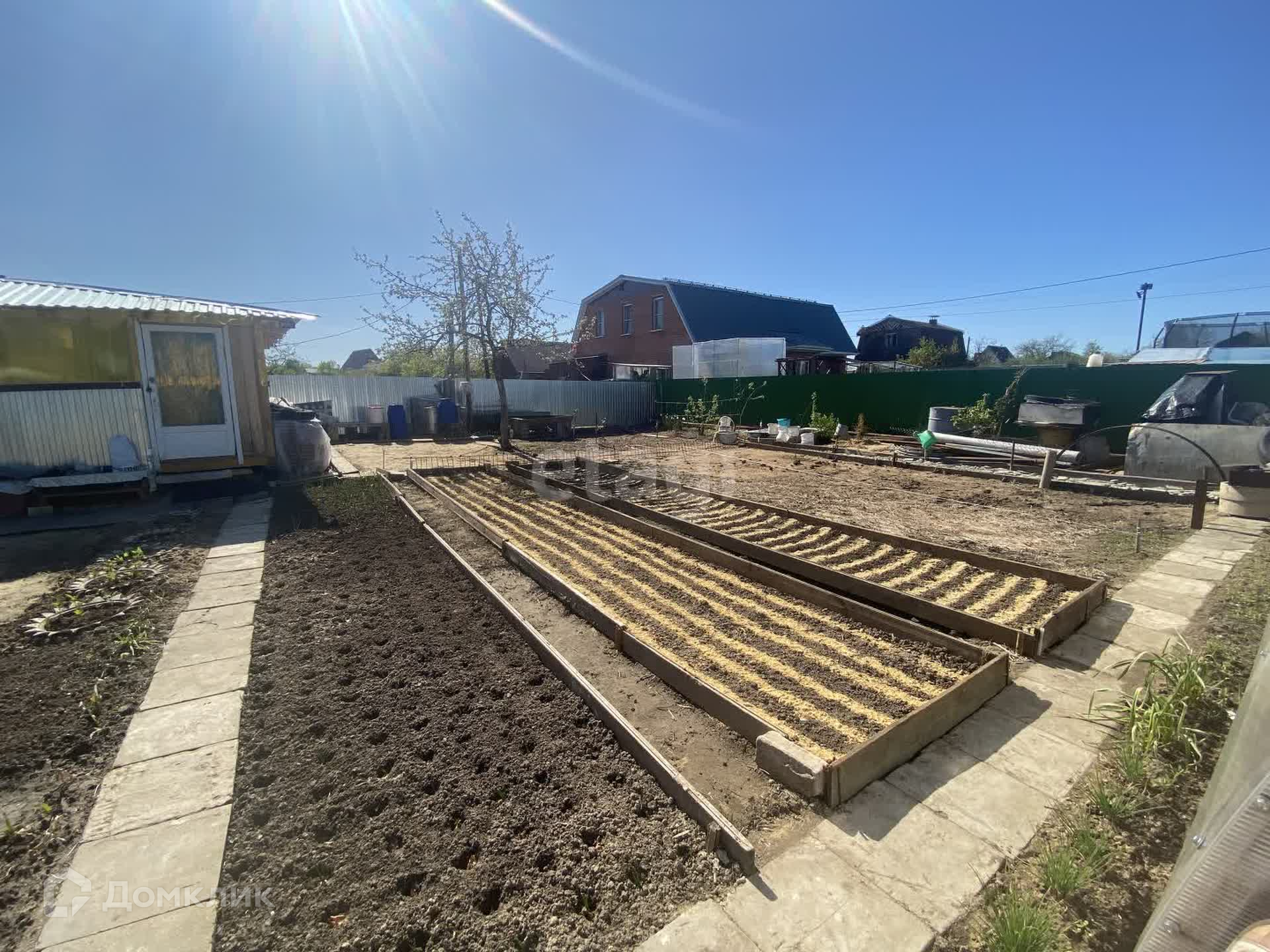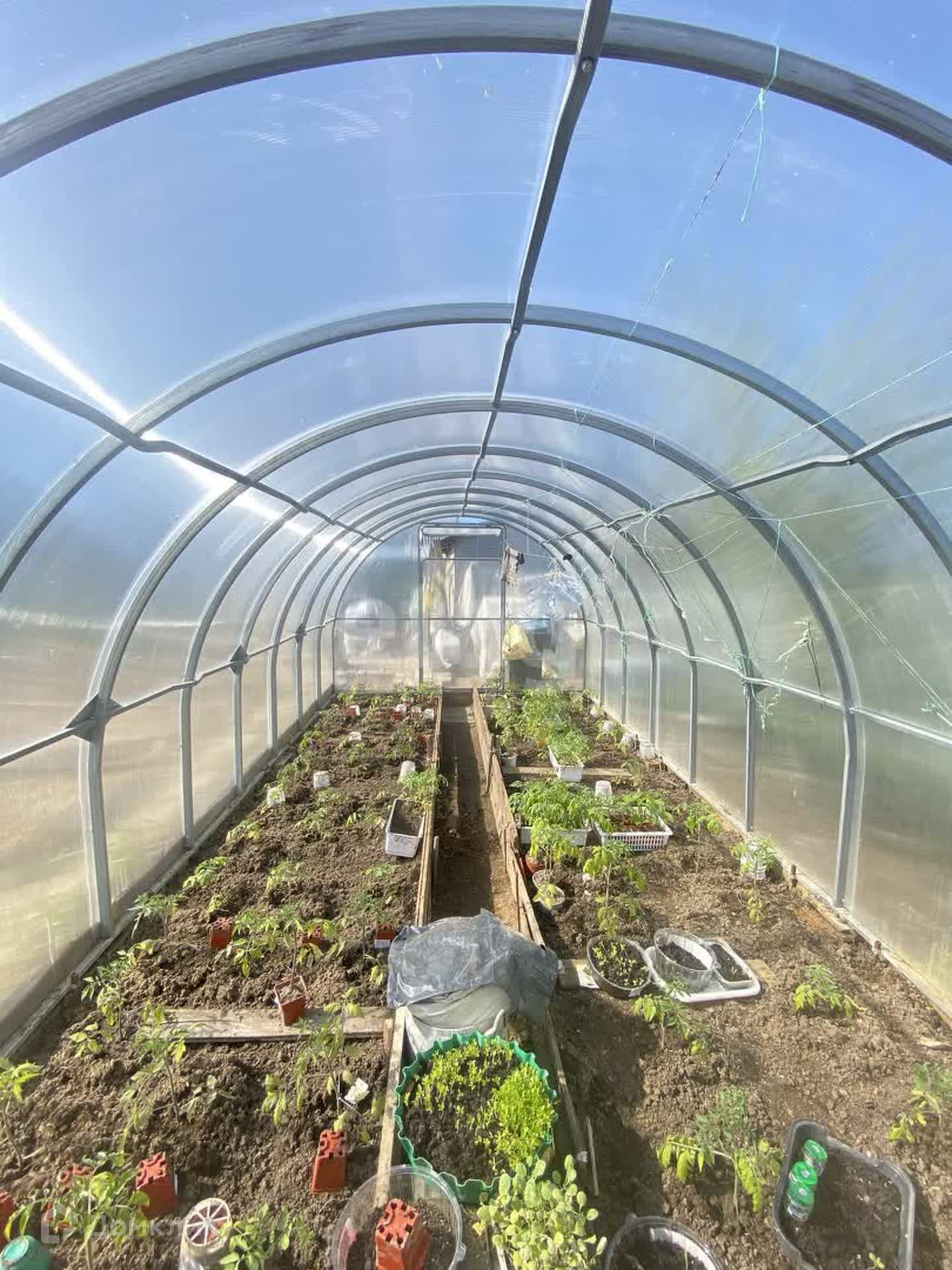 Участок поднят и выровнен, посажены различные культуры, плодовые деревья, есть теплица.
