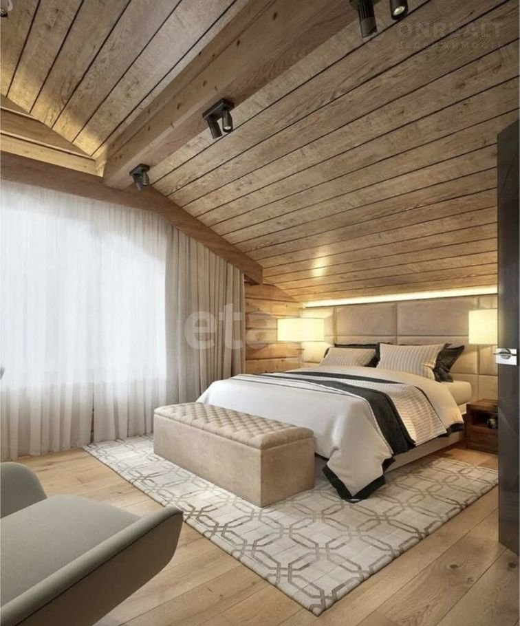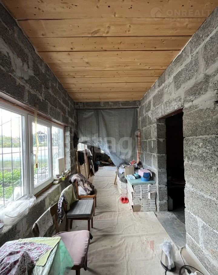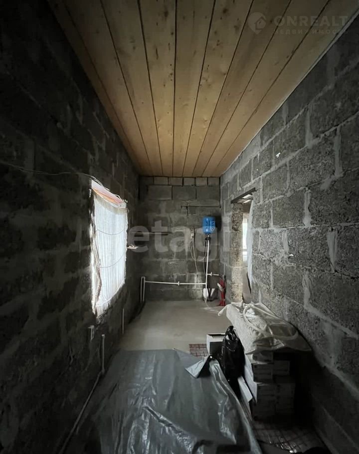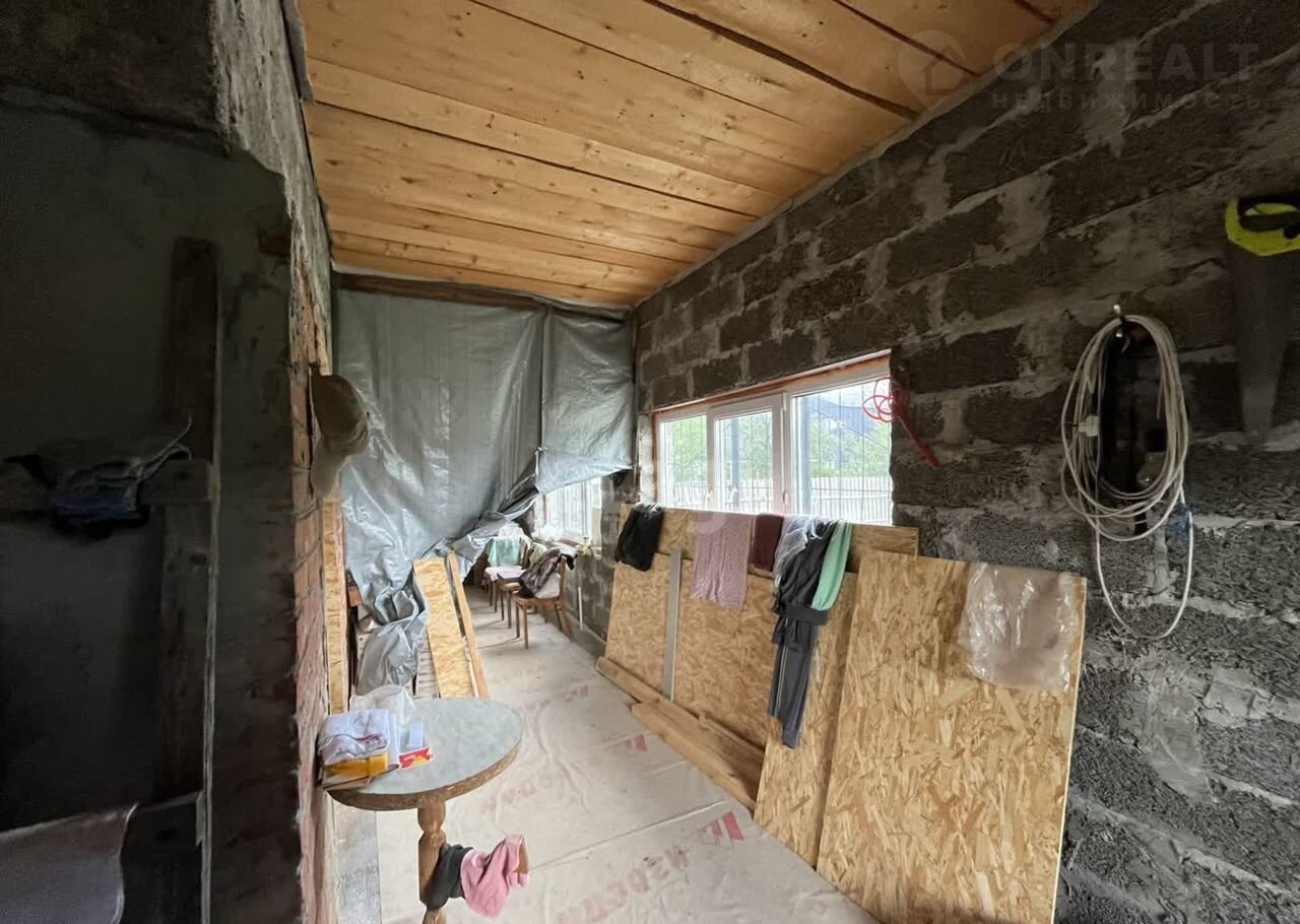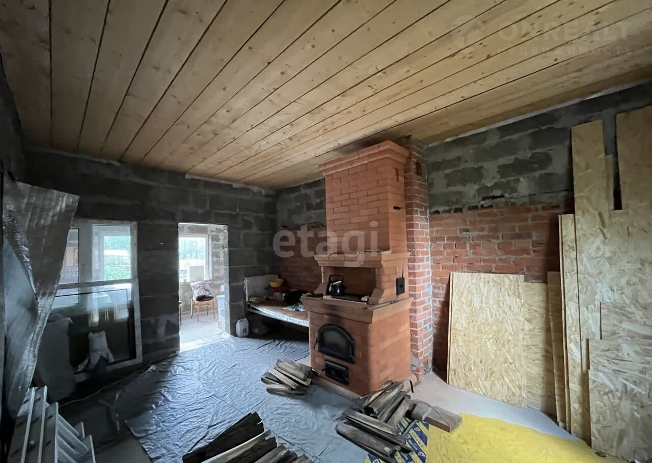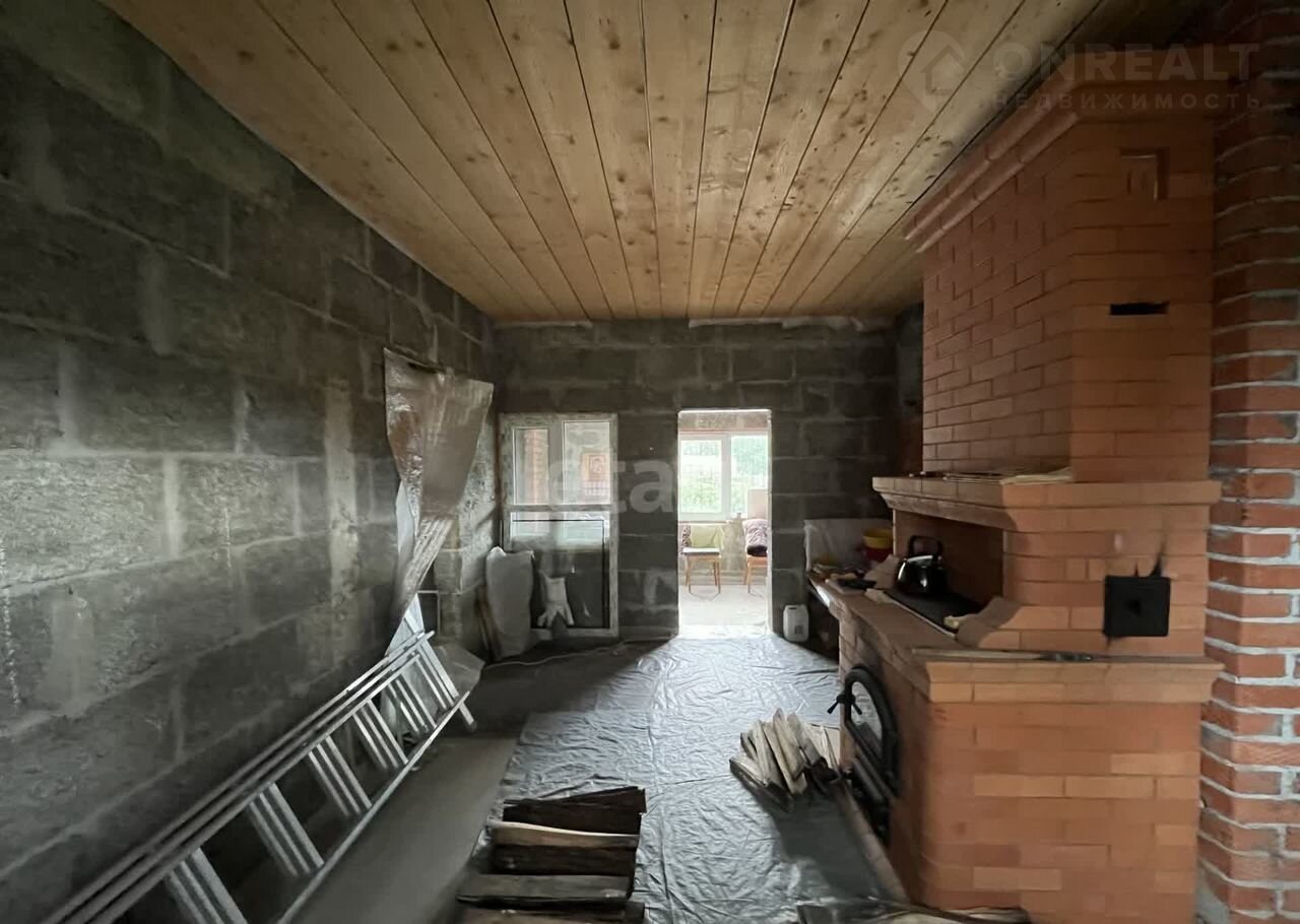 Дом (140 м2) построен из арболита — материала, который хорошо удерживает тепло, благодаря чему снижаются расходы на отопление. На первом этаже уложен тёплый пол, установлена печь, частично выполнена отделка ОСП. Второй этаж полностью отделан ОСП.