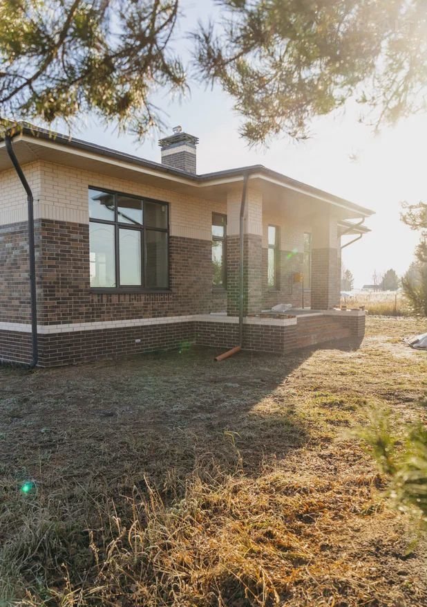 - Стильный coврeменный фаcaд из кирпича и деpeвянного планкeнa;