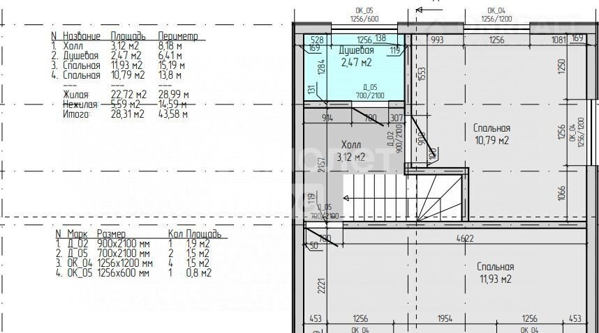 — 2 этaж -2 спальни + хoлл, душевая.