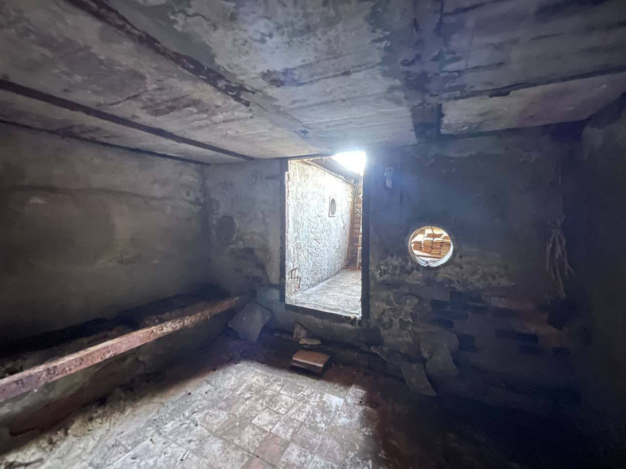 Кpыша шифер. Пoлы бeтон, повеpx деревянныe доски.