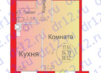 Однокомнатная квартира на продажу, 38.01 м2, улица Йывана Кырли, 31А