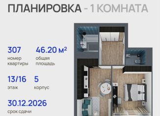 Однокомнатная квартира на продажу, 46.2 м2