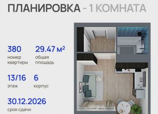1-комнатная квартира на продажу, 29.5 м2