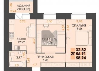 Продажа 2-комнатной квартиры, 56.6 м2