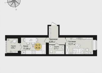 Однокомнатная квартира на продажу, 38.6 м2, Фестивальная улица