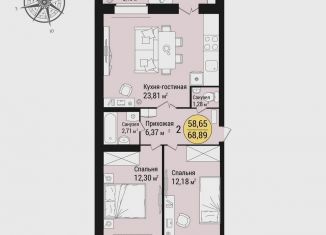 2-комнатная квартира на продажу, 68.2 м2, Фестивальная улица