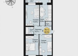 Общая площадь: 68.4 м2