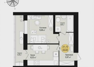 Общая площадь: 33 м2