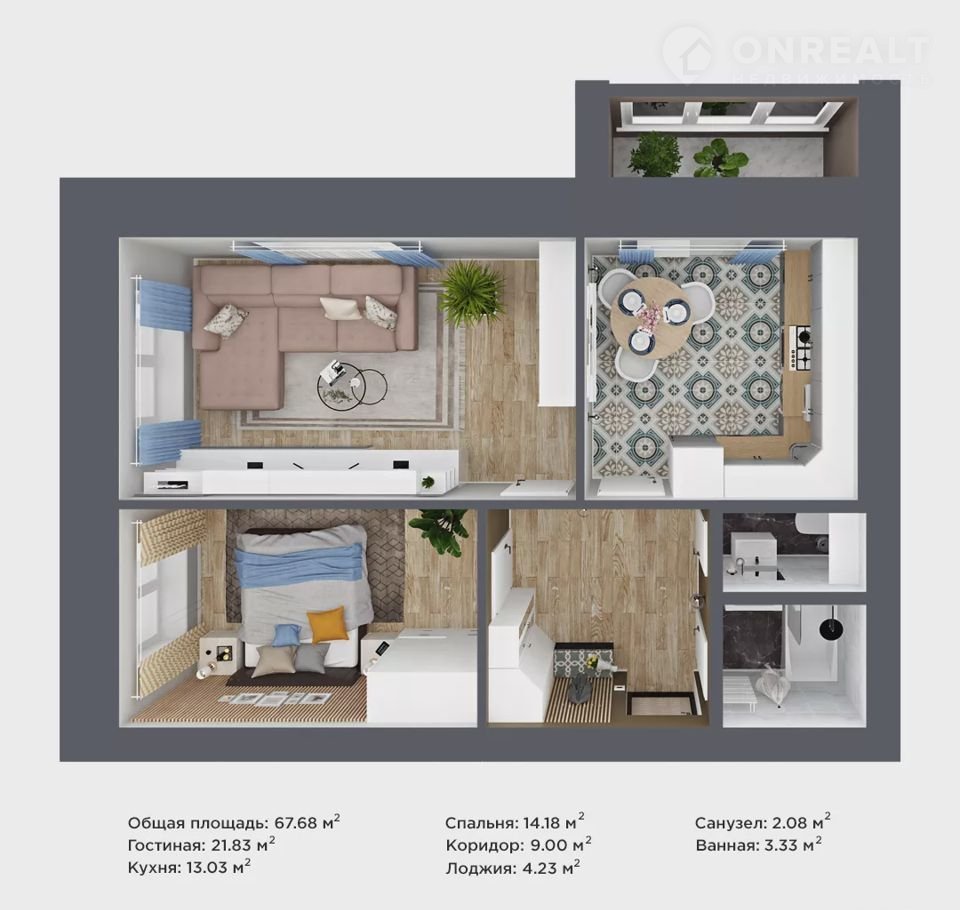 Общая площадь 67.7 м2