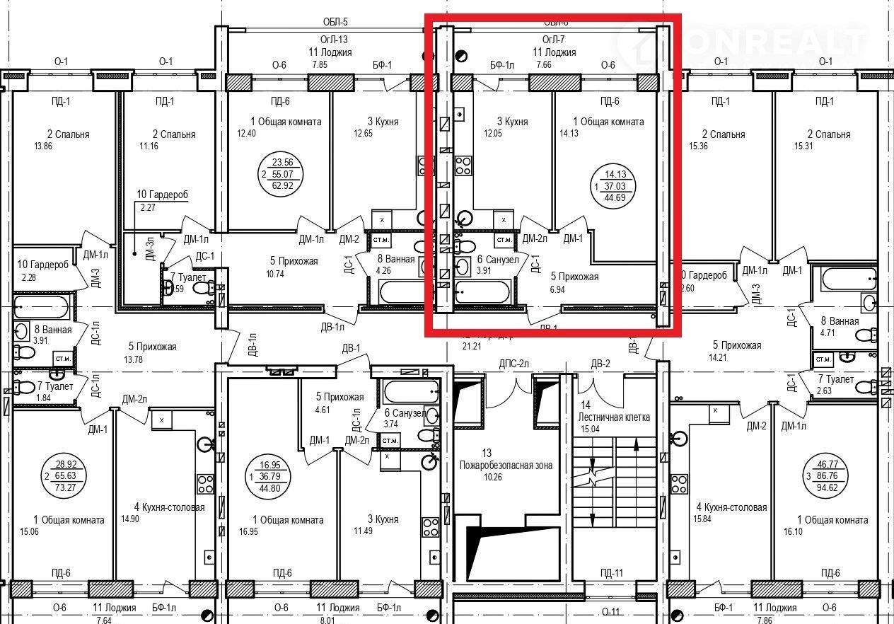 Общая площадь 44.7 м2
