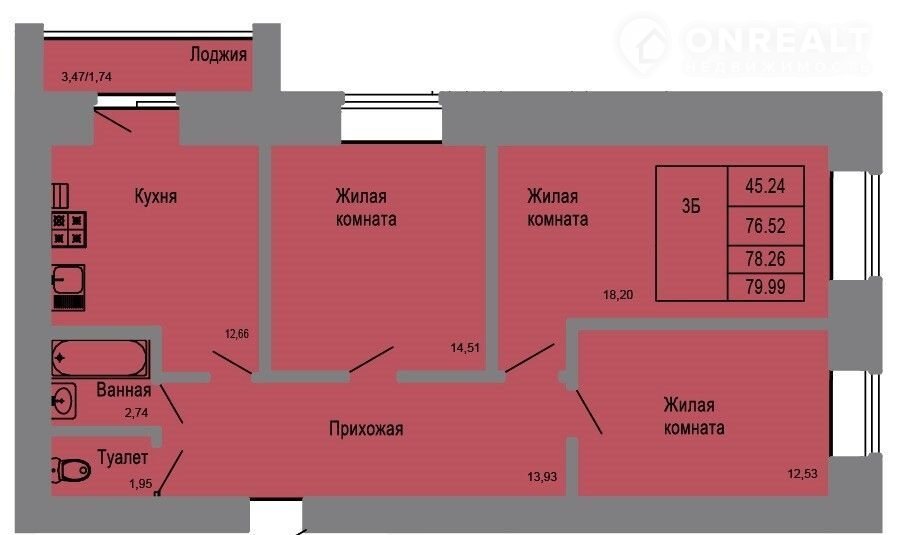 Общая площадь 78.3 м2