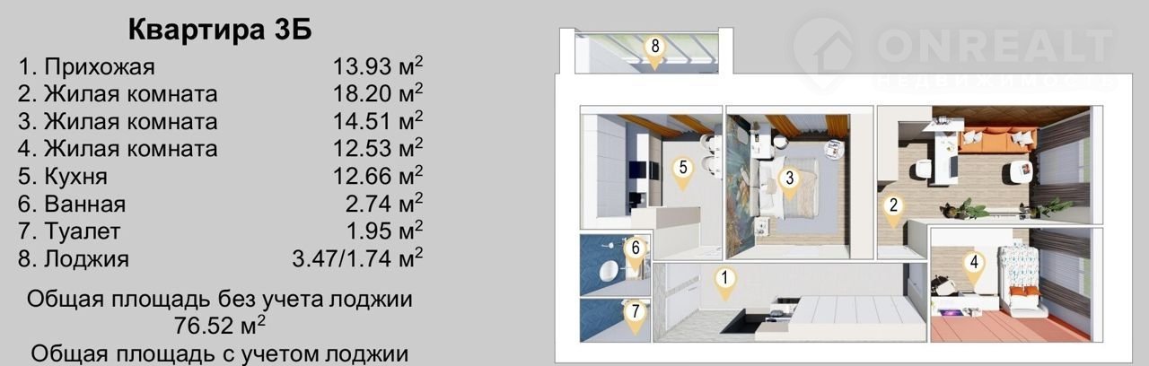 3-комнатная квартира, 78.3 м2, этаж 1 / 9, на продажу в Йошкар-Оле