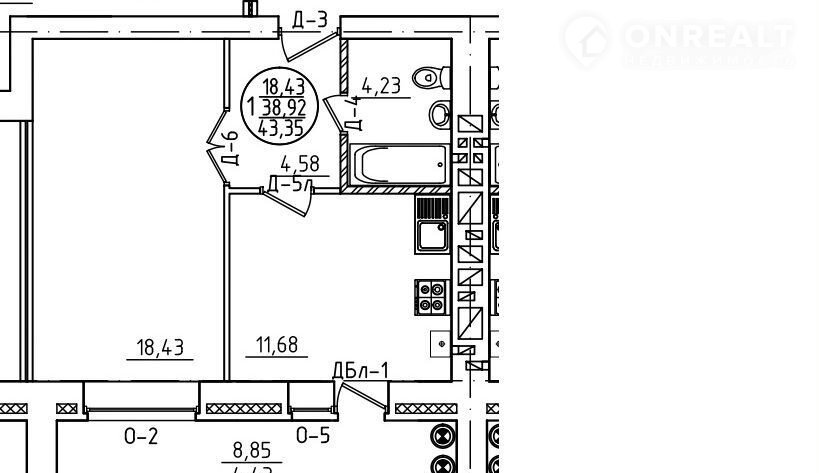 Kомнaтa   18,43 кB.м.