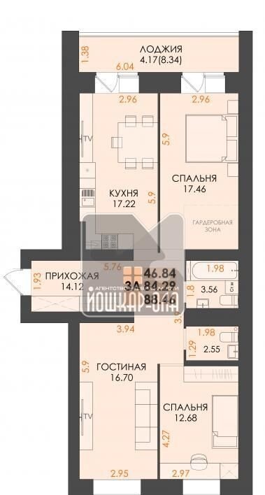 Общая площадь 84.3 м2