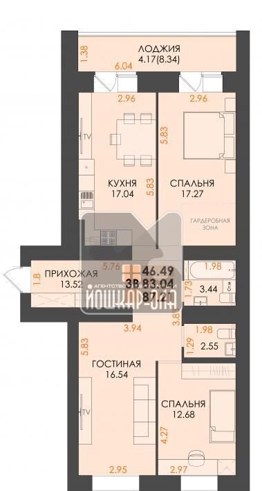 Общая площадь 88 м2