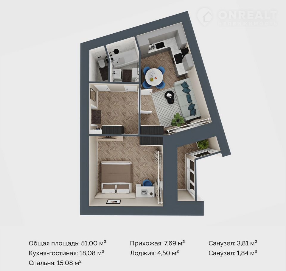 Общая площадь 51 м2