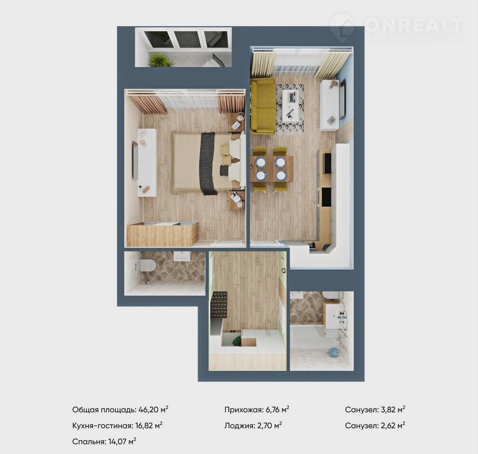 Общая площадь 46.2 м2