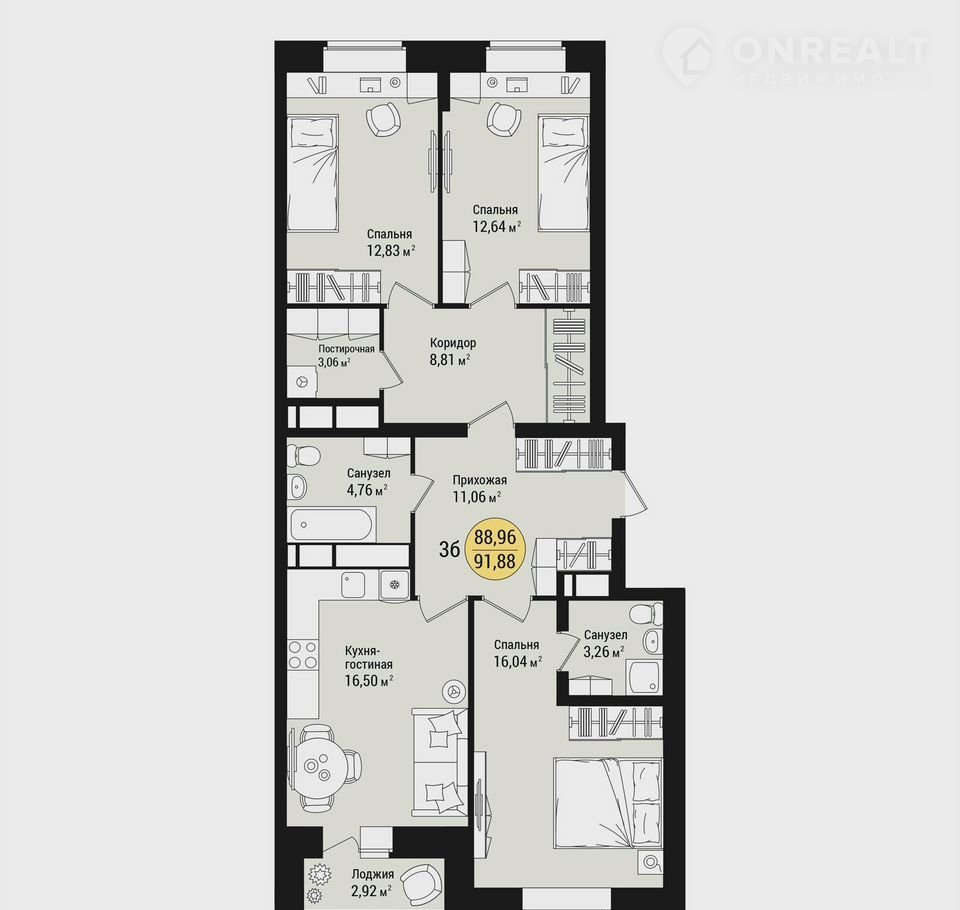 Общая площадь 91.9 м2