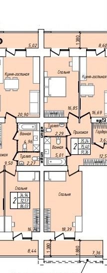 Общая площадь 91.4 м2