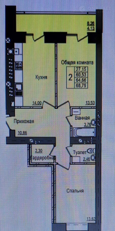 Общая площадь 61.4 м2