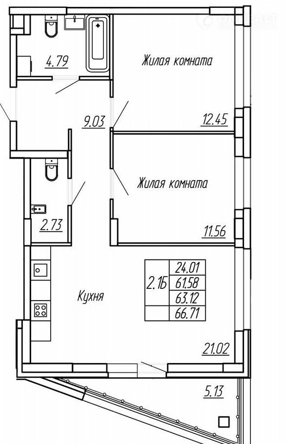 Общая площадь 63.1 м2