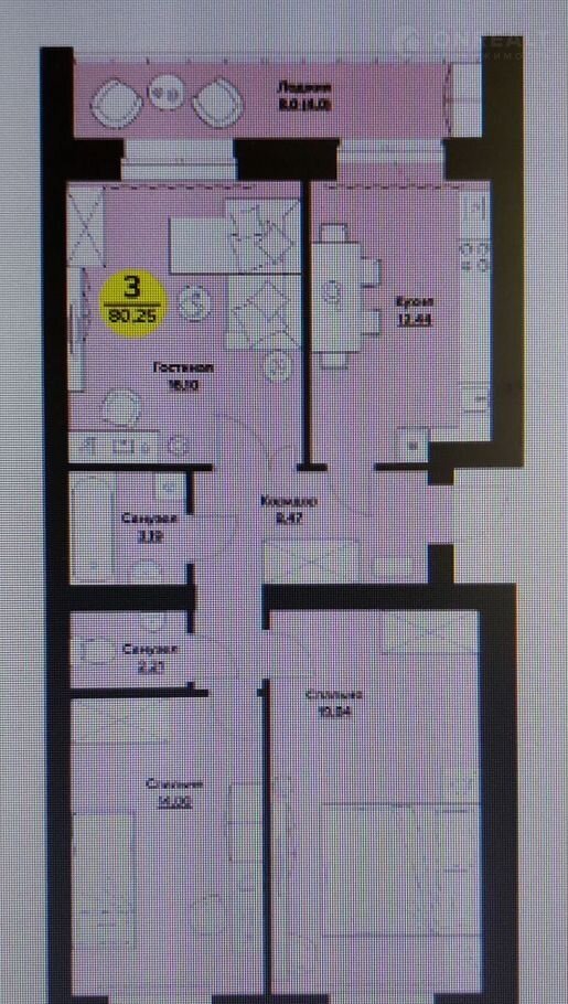 Общая площадь 80.3 м2