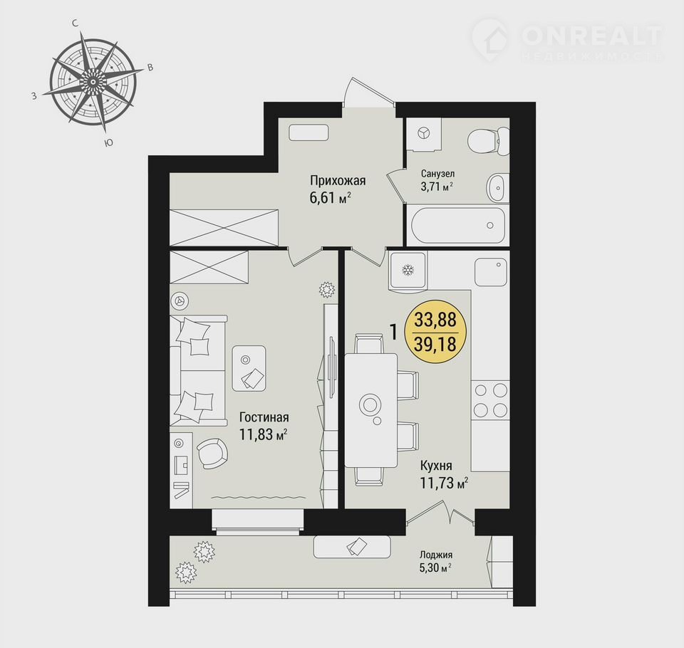Количество комнат 1